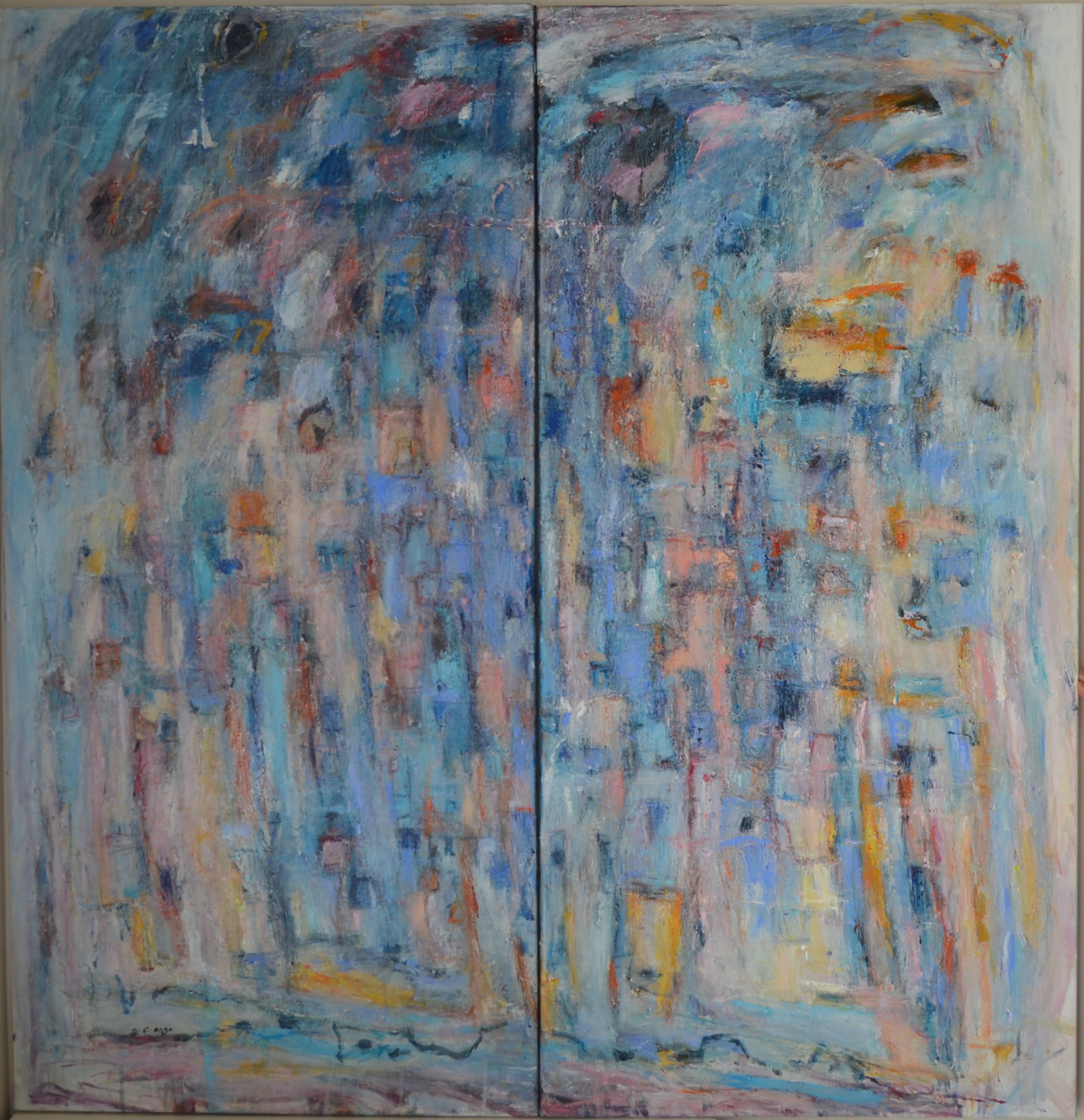 Christine Ange Lefevre, Mer en rose et bleu 12 juillet 2021 • 2162 × 2235 • Galerie 2 Diptyque Acrylique sur toile, (2 x 124,5 cm x 60 cm)